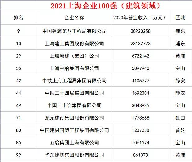2021上海百?gòu)?qiáng)企業(yè)亮相!11家建筑企業(yè)上榜!